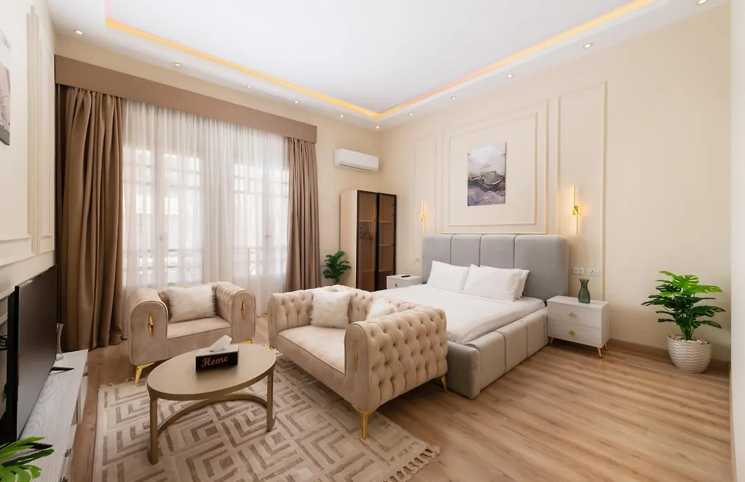 تم تجهيز المطبخ بالمجمدة والفرن والموقد للخدمة الذاتية. تقع محطة مترو السادات على مسافة 850 متر، وتوفّر إمكانية الوصول إلى بقية أنحاء القاهرة.